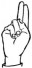 На ћирилици написано МАЈА ЈОВЕЉИЋ састоји се из 11 слова [?]. Исписано ћириличном једноручном азбуком за глувонеме: